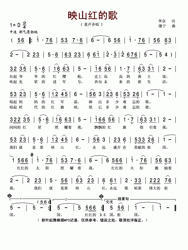 >> ӳɽºìµÄ¸è-ͯÉùÆë³ª(¼òÆ×)