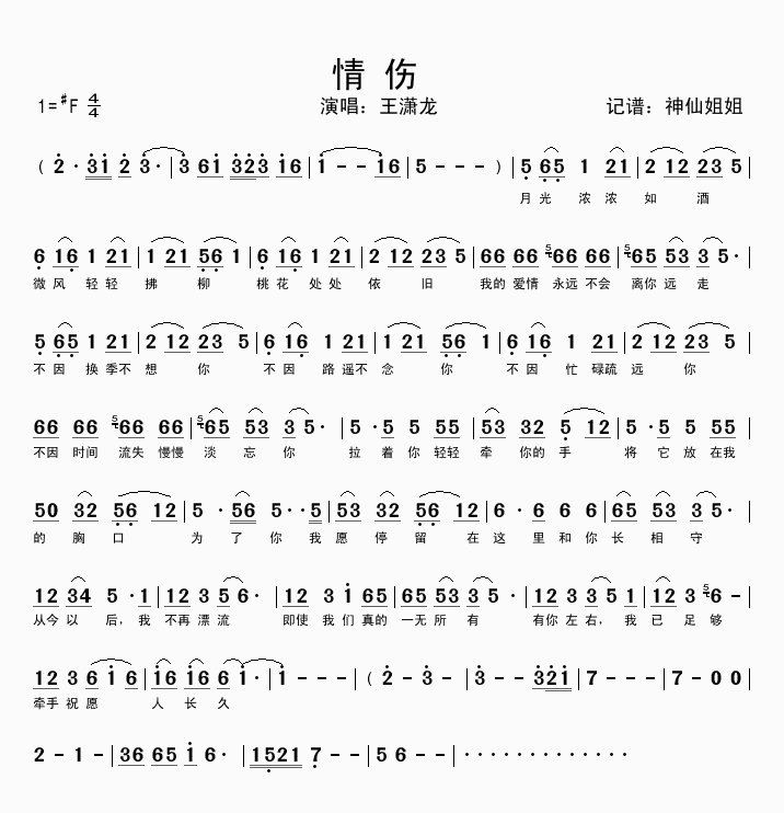情伤-王潇龙(简谱)