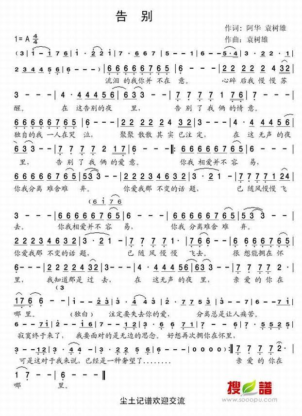 袁树雄-告别歌词: