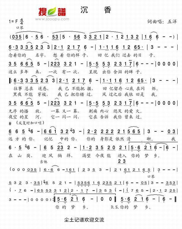 沉香(《血色沉香》主题曲)——沙宝亮(简谱)