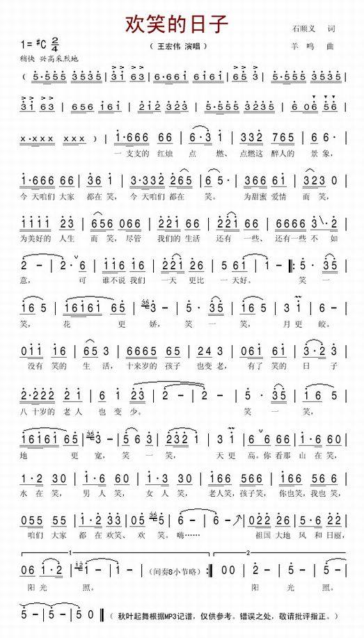 王宏伟-欢笑的日子歌词: