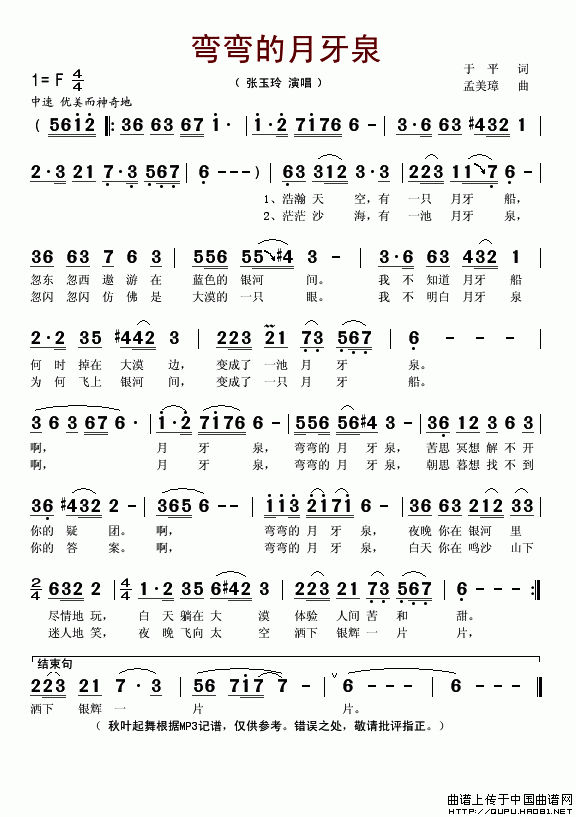 >> 弯弯的月牙泉-张玉玲(简谱)