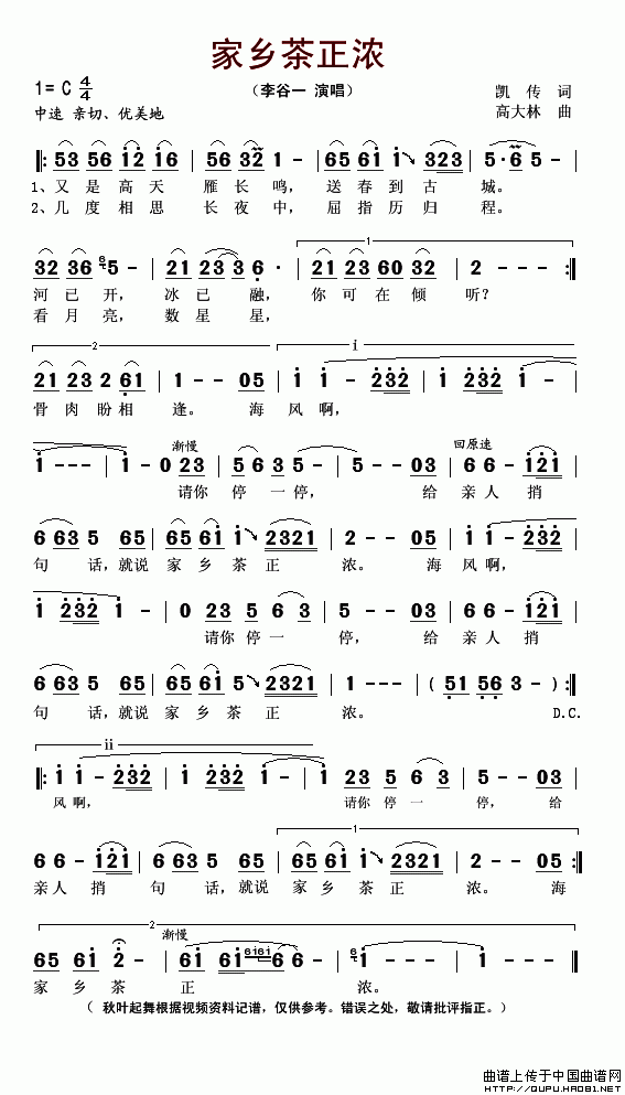 >> 家乡茶正浓-李谷一(简谱)