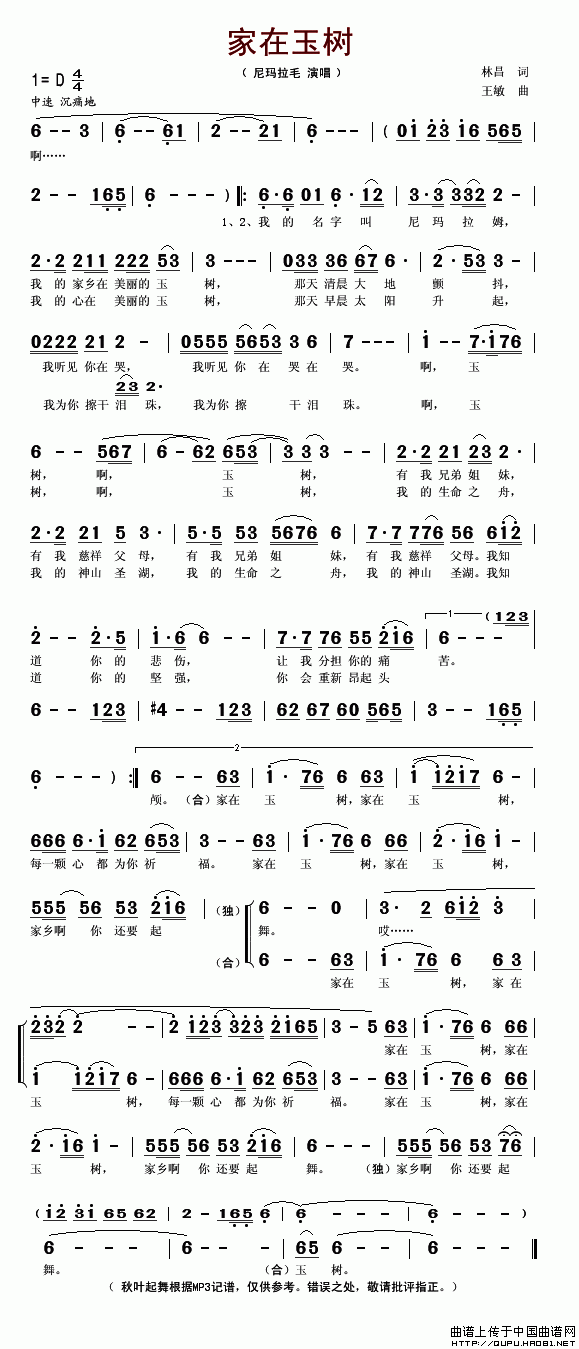 家在玉树 歌词: