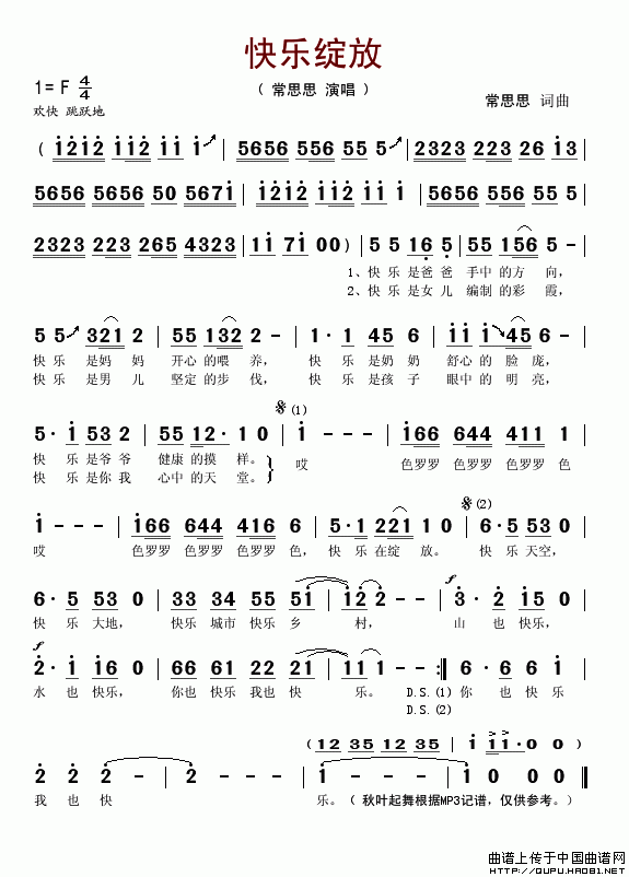 >> 快乐绽放-常思思(简谱)