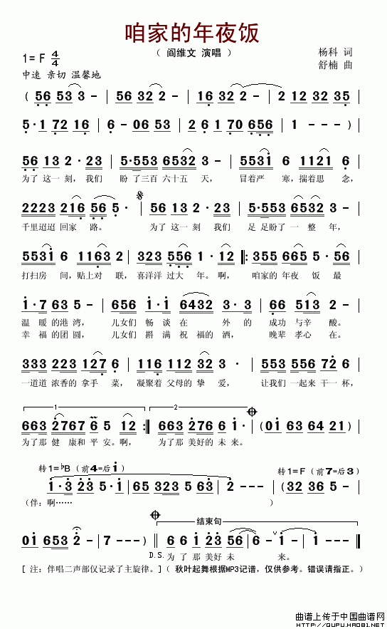 作词 杨科 作曲 舒楠
