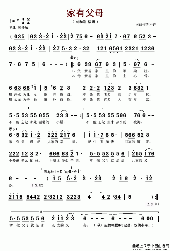 >> 家有父母-刘和刚(简谱)