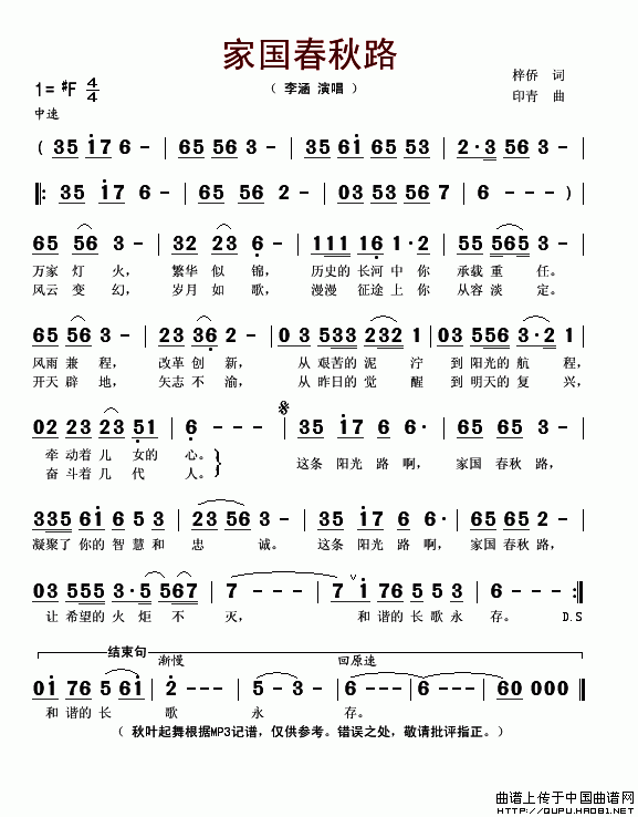 >> 家国春秋路-李涵(简谱)