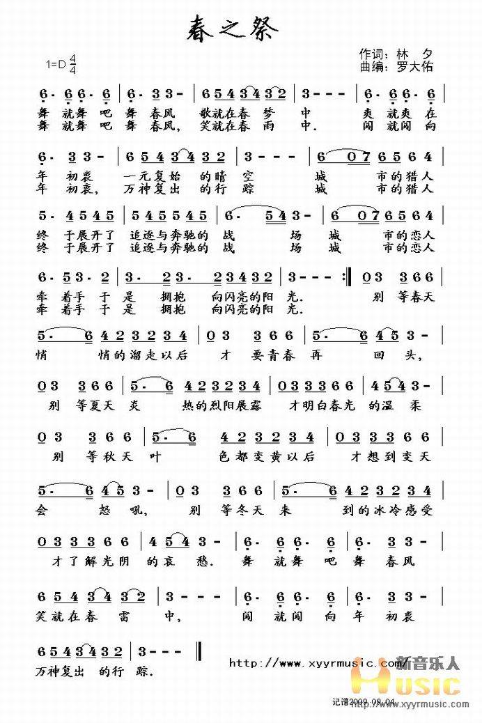 >> 《春之祭》-娃娃演唱(简谱)