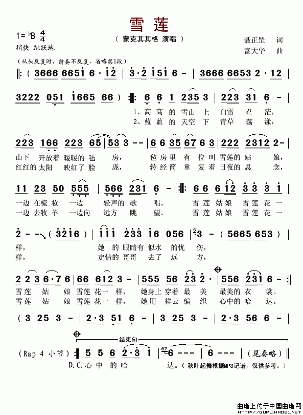 >> 雪莲-格格(蒙克其其格简谱)
