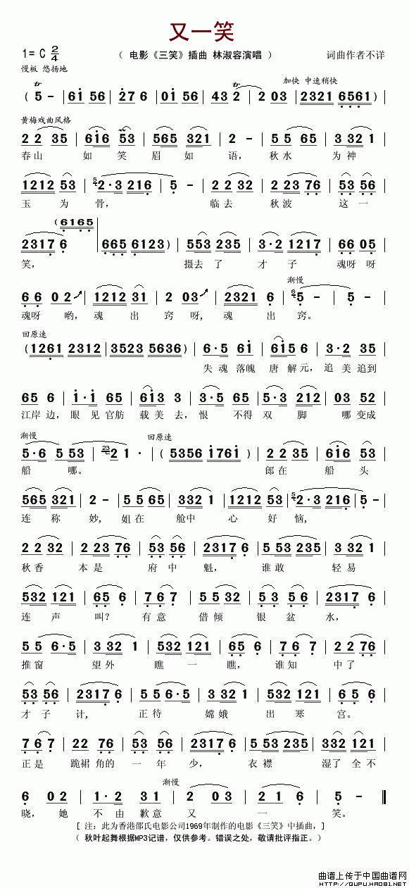 这是香港邵氏电影公司在1969年摄制的电影《三笑》插曲,黄梅戏风格的演唱,柔美中透着谐趣,闻者无不耳目一新。