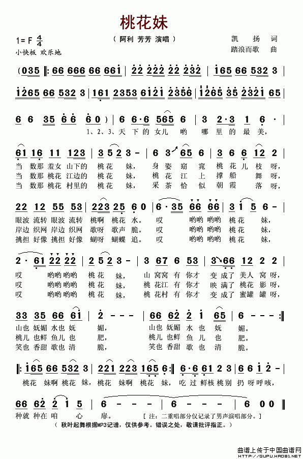 >> 桃花妹-阿利 芳芳(简谱)