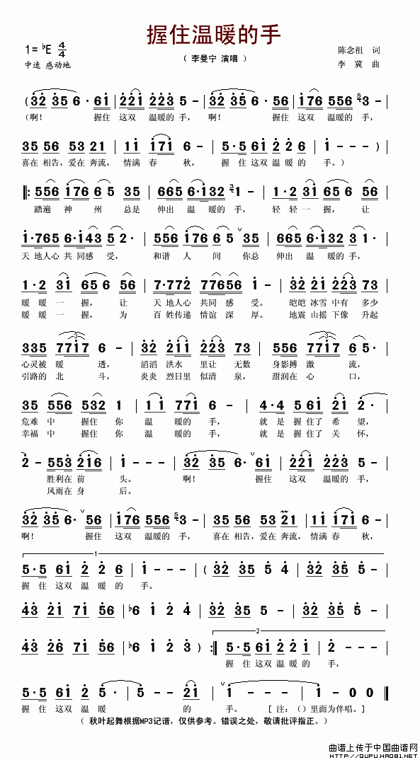谨以此歌献给敬爱的温总理以及赈灾一线的所有人员。 演唱者李曼宁简介:中国音乐学院本科毕业,多年演出经验,荣获多个奖项,多次参加中央电视台举办的大型晚会,并擅长文艺演出策划。
