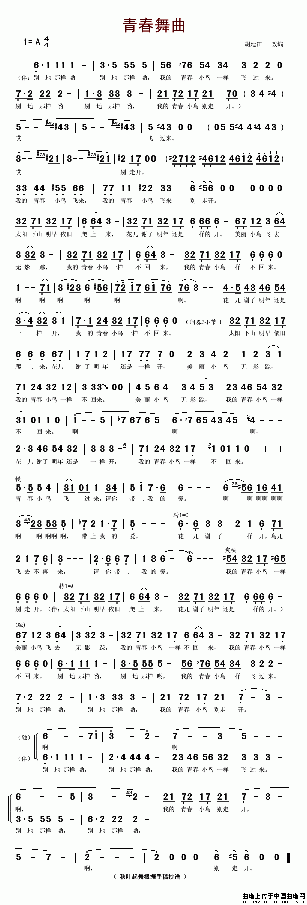 >> 青春舞曲-刘玥(新谱二版简谱)