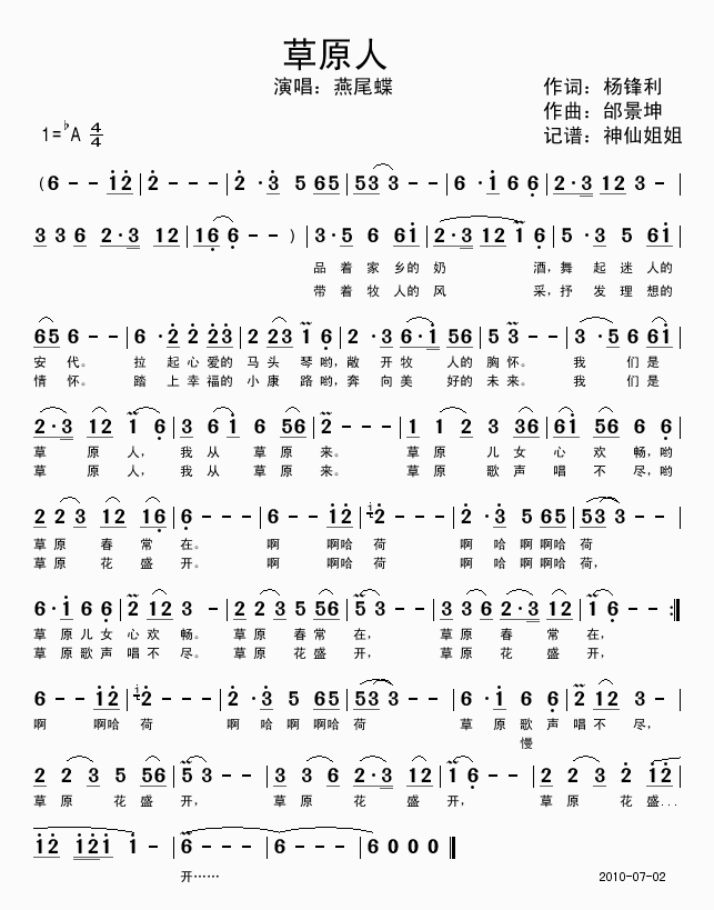 美丽的萨拉乌苏河-燕尾蝶(简谱)