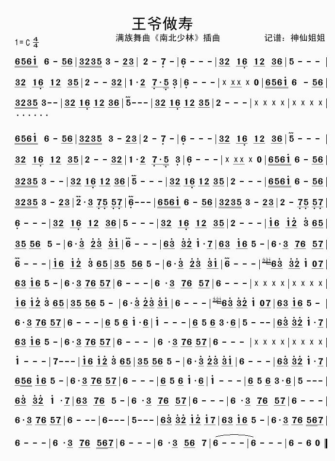 >> 王爷做寿-满族舞曲(主旋律简谱)