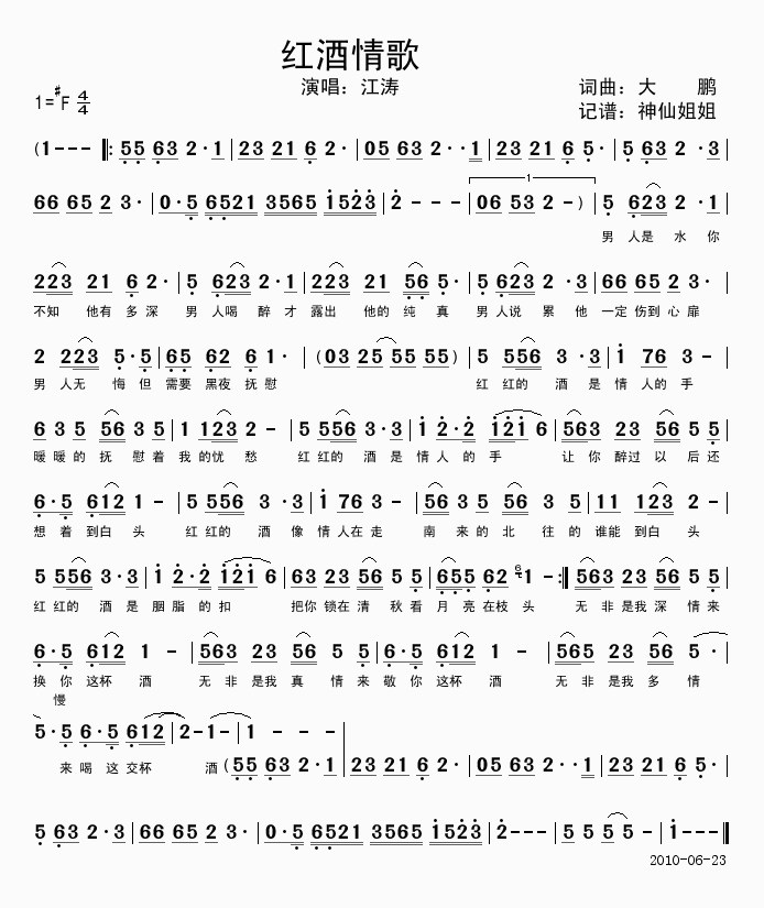 >> 红酒情歌-江涛(简谱)