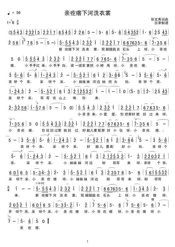 >> 亲疙瘩下河洗衣裳-山西左权民歌(简谱)