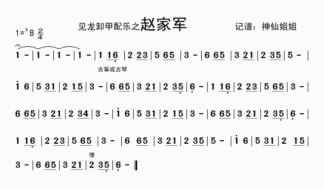 >> 三国之见龙卸甲配乐-赵家军(简谱)