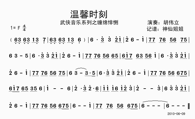 >> 温馨时刻-武侠音乐系列之缠绵悱恻(旋律简谱)