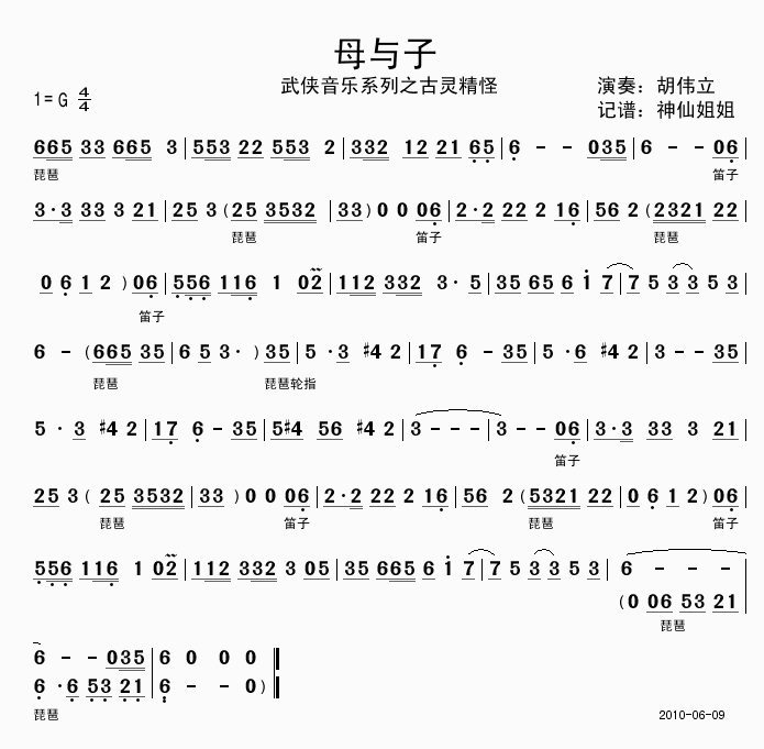 >> 母与子-武侠音乐系列之古灵精怪(旋律简谱)