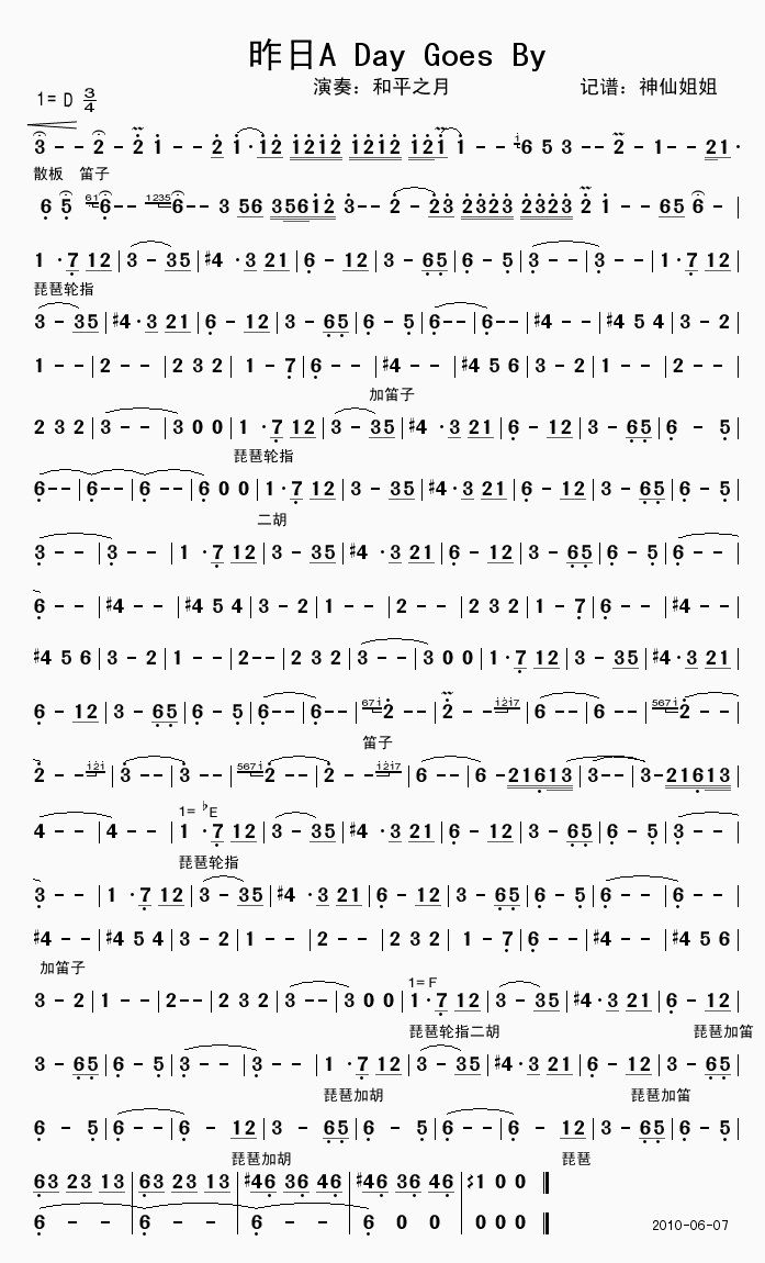 >> 昨日A Day Goes By-和平之月(主旋律简谱)