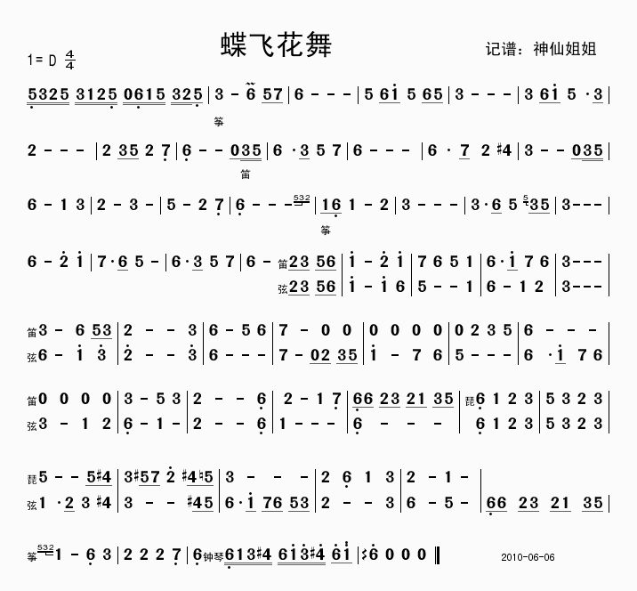 >> 蝶飞花舞-纯音乐(旋律简谱)