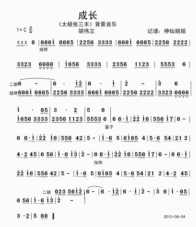 >> 成长-《太极张三丰》背景音乐(旋律简谱)