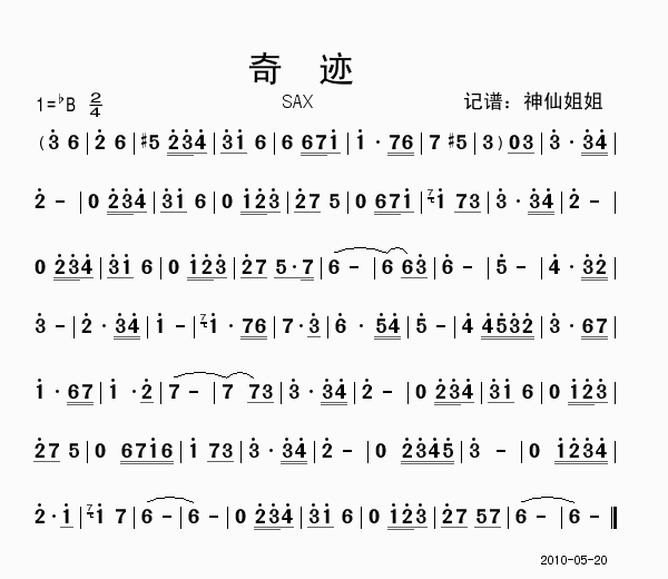 奇迹-肯尼基(bB调高音萨克斯曲谱_简谱)