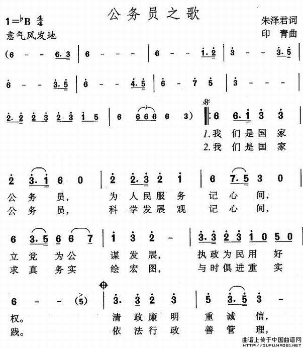>> 公务员之歌-阎维文(简谱)