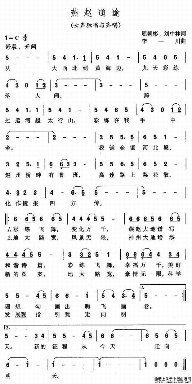 >> 燕赵通途-女声独唱与齐唱(简谱)