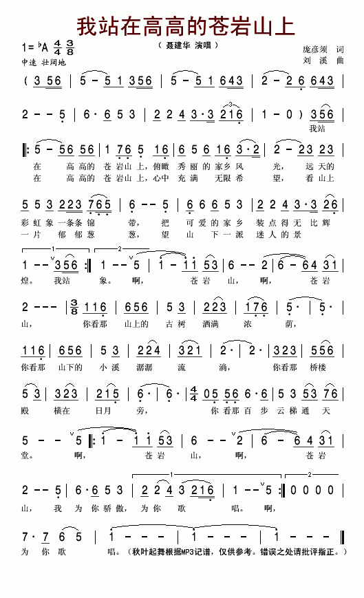 >> 我站在高高的苍岩山上-聂建华(简谱)