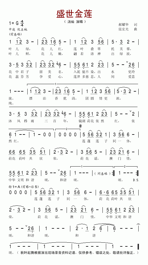>> 盛世金莲-汤灿(简谱)