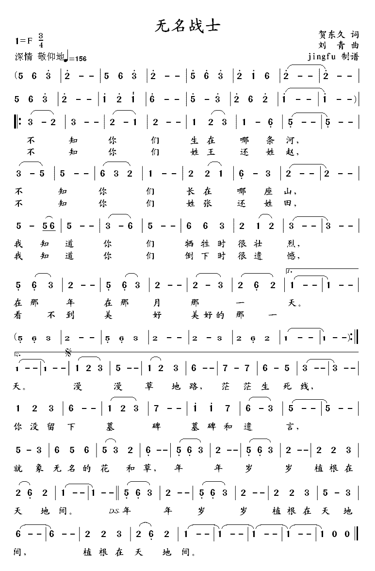 无名战士-董文华(简谱)