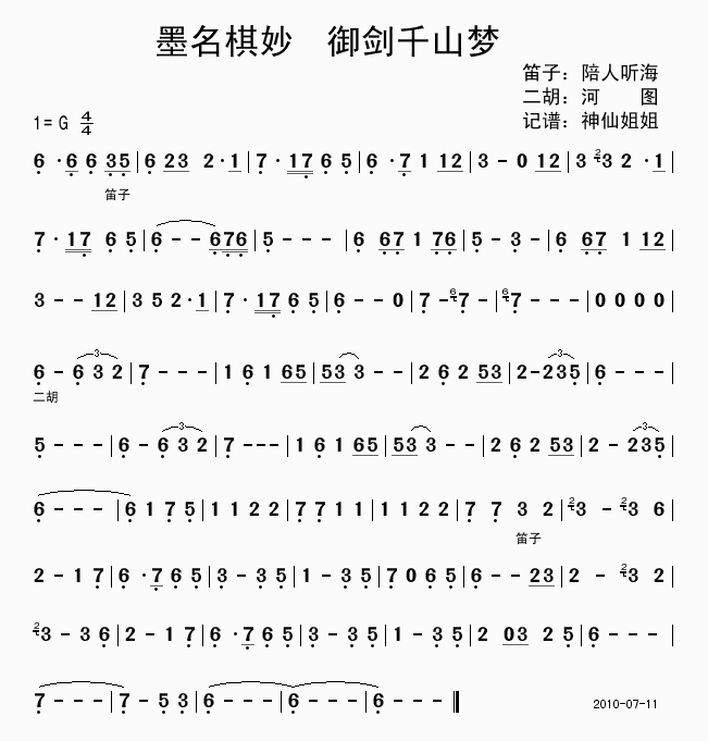 >> 墨明棋妙-御剑千山梦(旋律简谱)