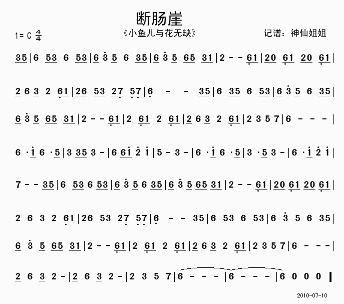 >> 断肠崖-《小鱼儿与花无缺》背景音乐(旋律简谱)