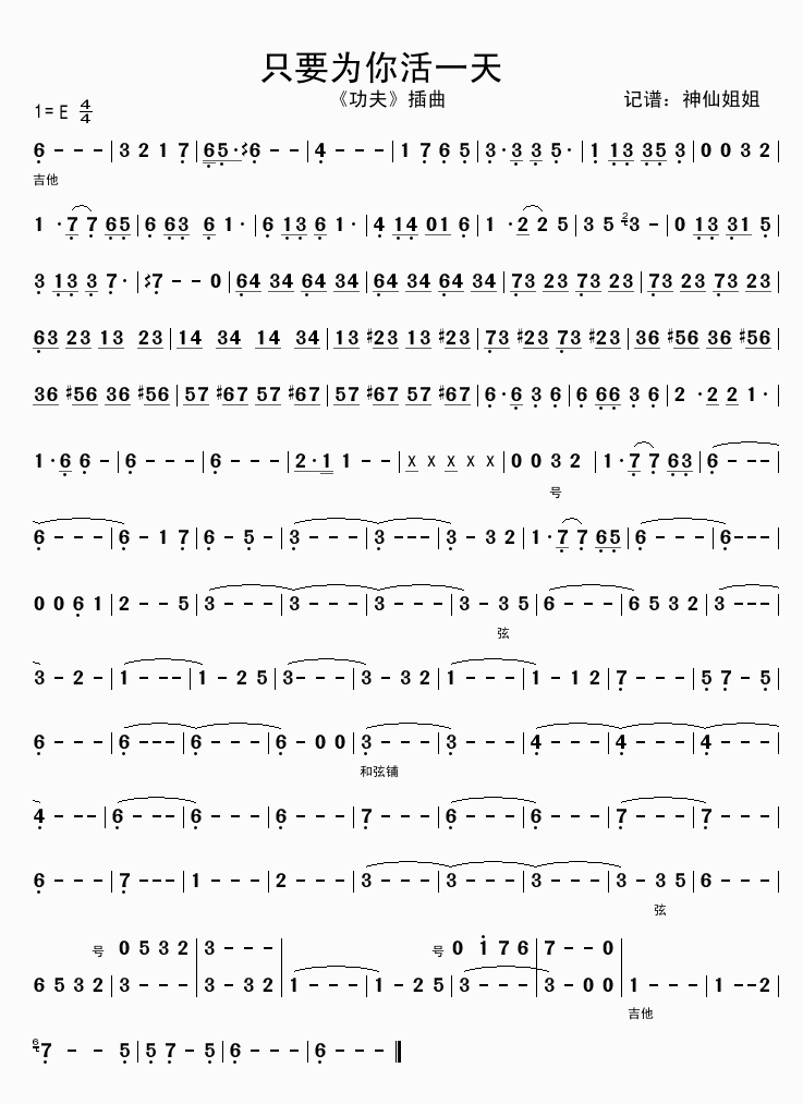>> 只要为你活一天-《功夫》插曲(旋律简谱)