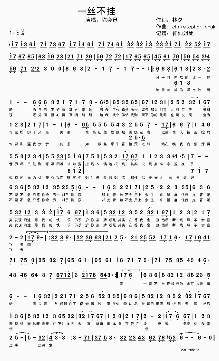 一丝不挂-陈奕迅 歌词: