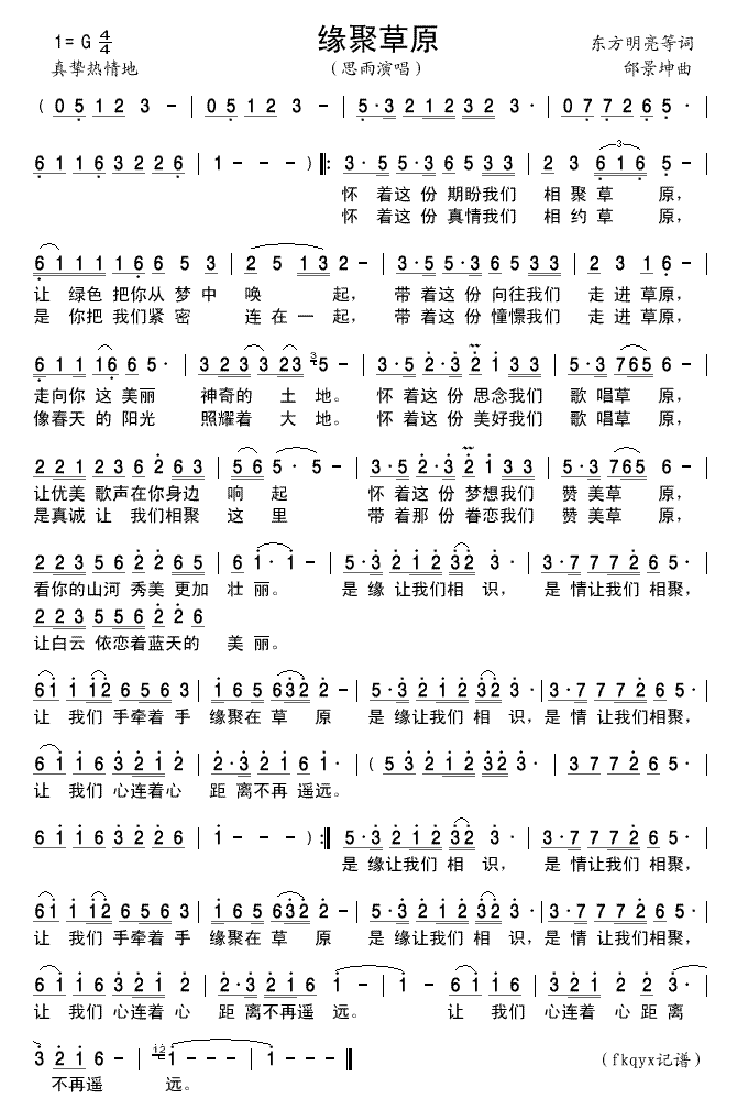 让我们手牵着手缘聚在草原.