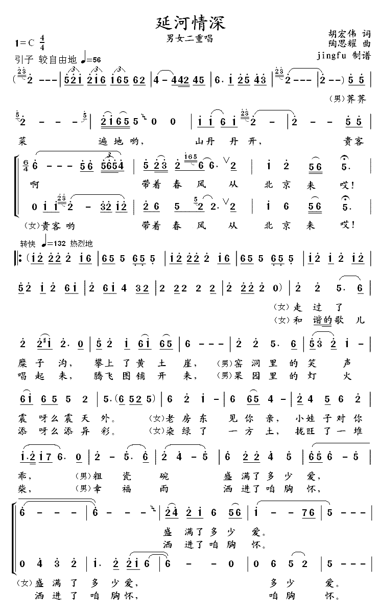 >> 延河情深-王宏伟 雷佳(二声部简谱)