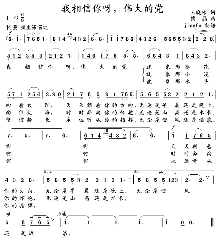 >> 我相信你呀,伟大的党-蒋大为(简谱)