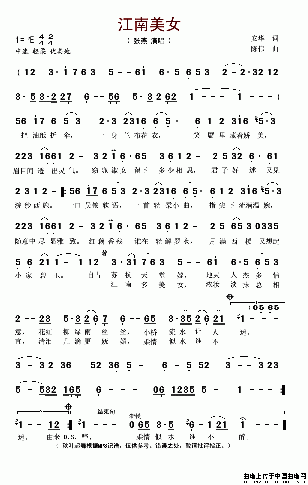 江南美女 歌词: