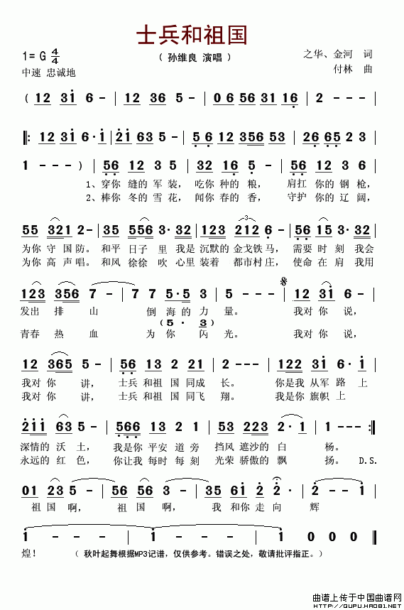 >> 士兵和祖国-孙维良(简谱_版本2)