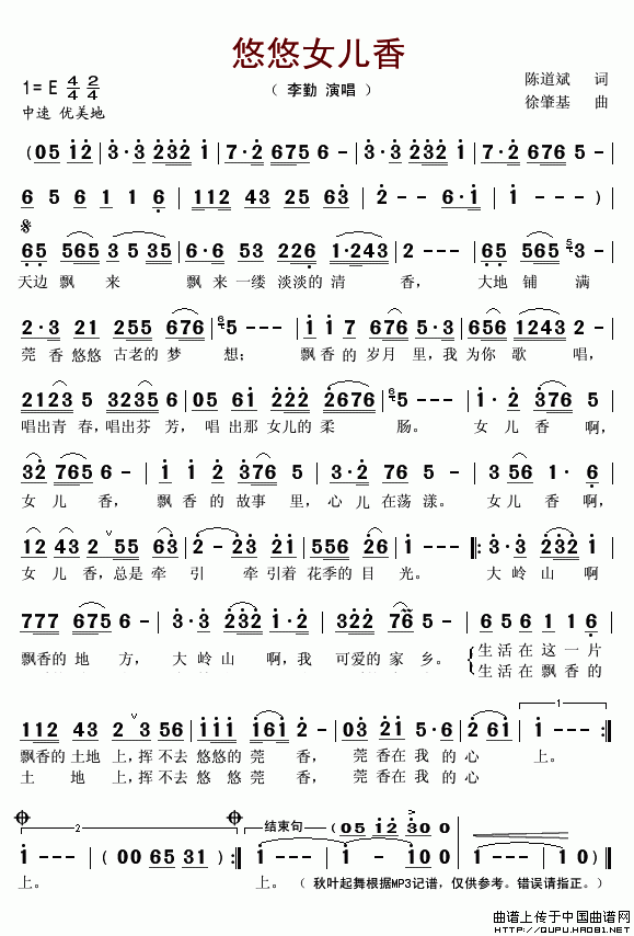 悠悠女儿香 歌词: