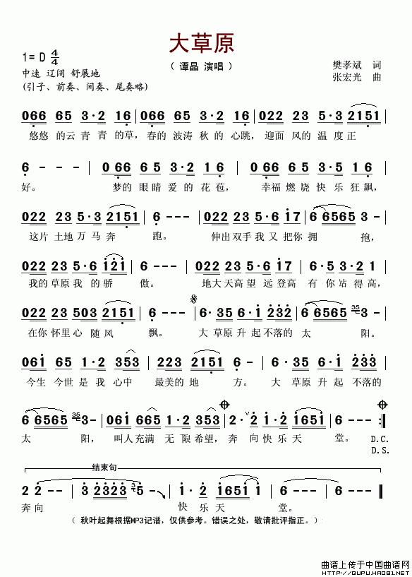 大草原 歌词: