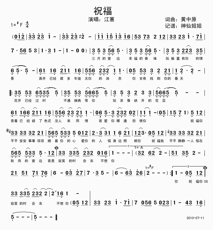 伤心酒店-施文彬 江蕙(闽南语简谱)
