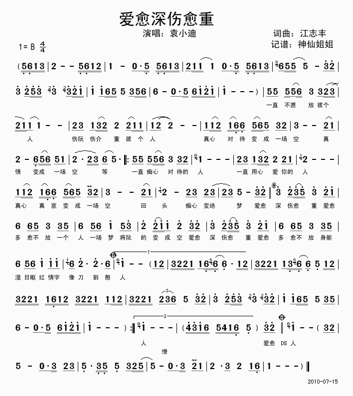 >> 爱愈深伤愈重-袁小迪(简谱)