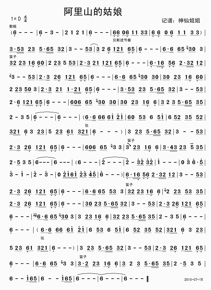 >> 阿里山的姑娘-台湾民歌(笛子曲谱)