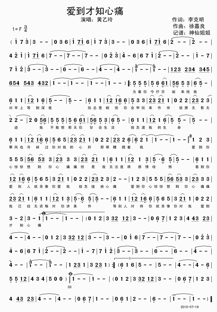 >> 爱到才知痛-黄乙玲(简谱)