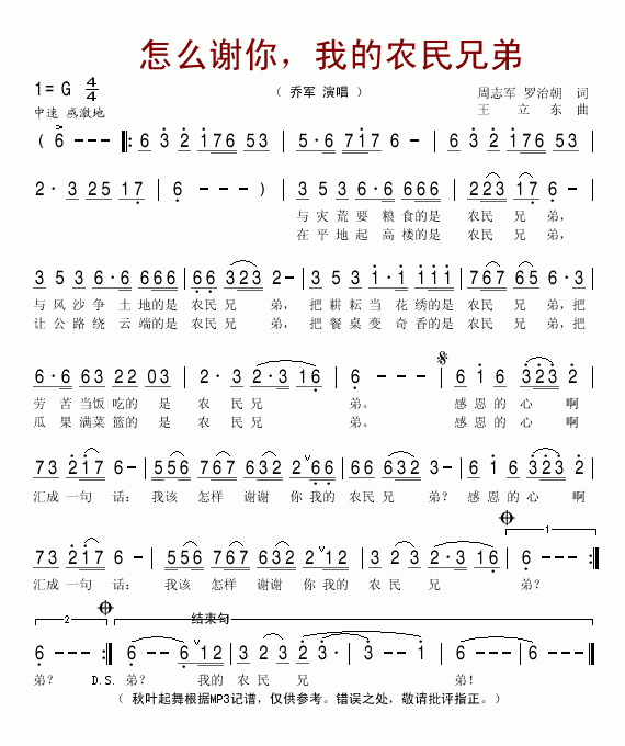 >> 怎么谢你,我的农民兄弟-乔军(简谱)